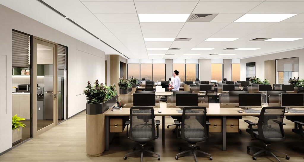 - Mức độ chiếu sáng: 500 Lux (khu văn phòng) & 100 Lux (sảnh & hành lang)
